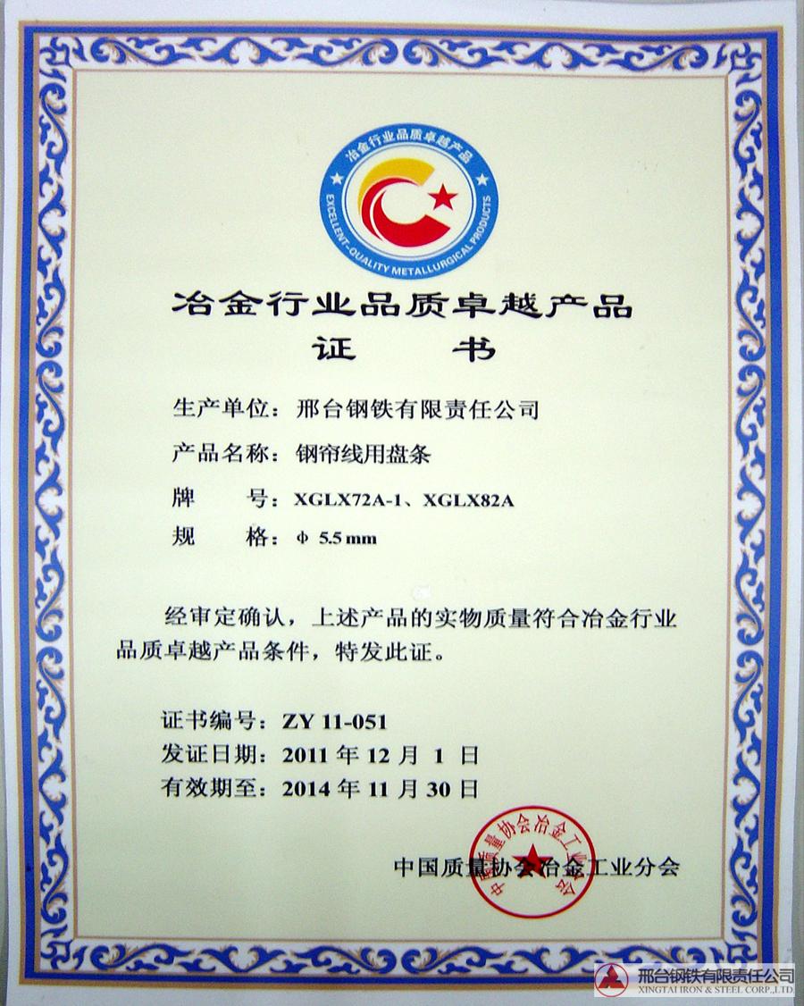 拉拔用高碳鋼盤條SWRH72A獲冶金產(chǎn)品實(shí)物質(zhì)量金杯獎(jiǎng)