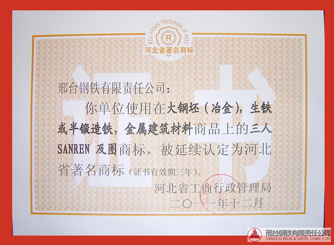 “三人”注冊(cè)商標(biāo)被延續(xù)認(rèn)定為河北省著名商標(biāo)