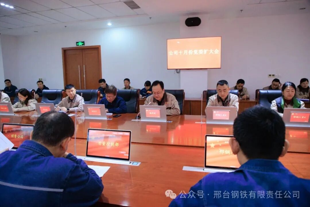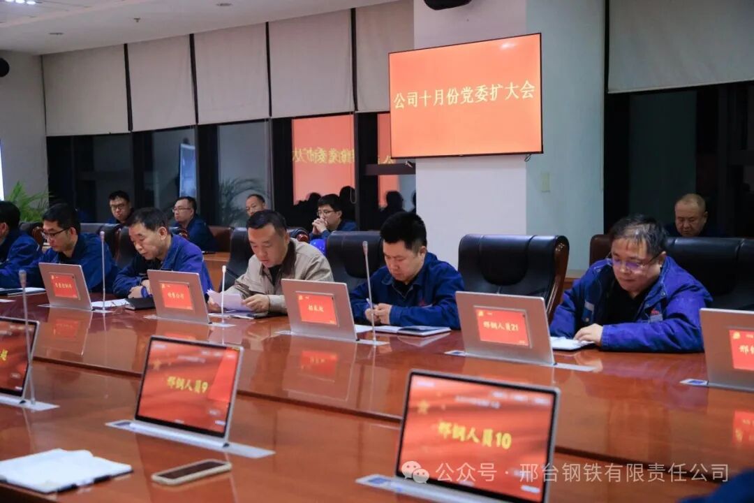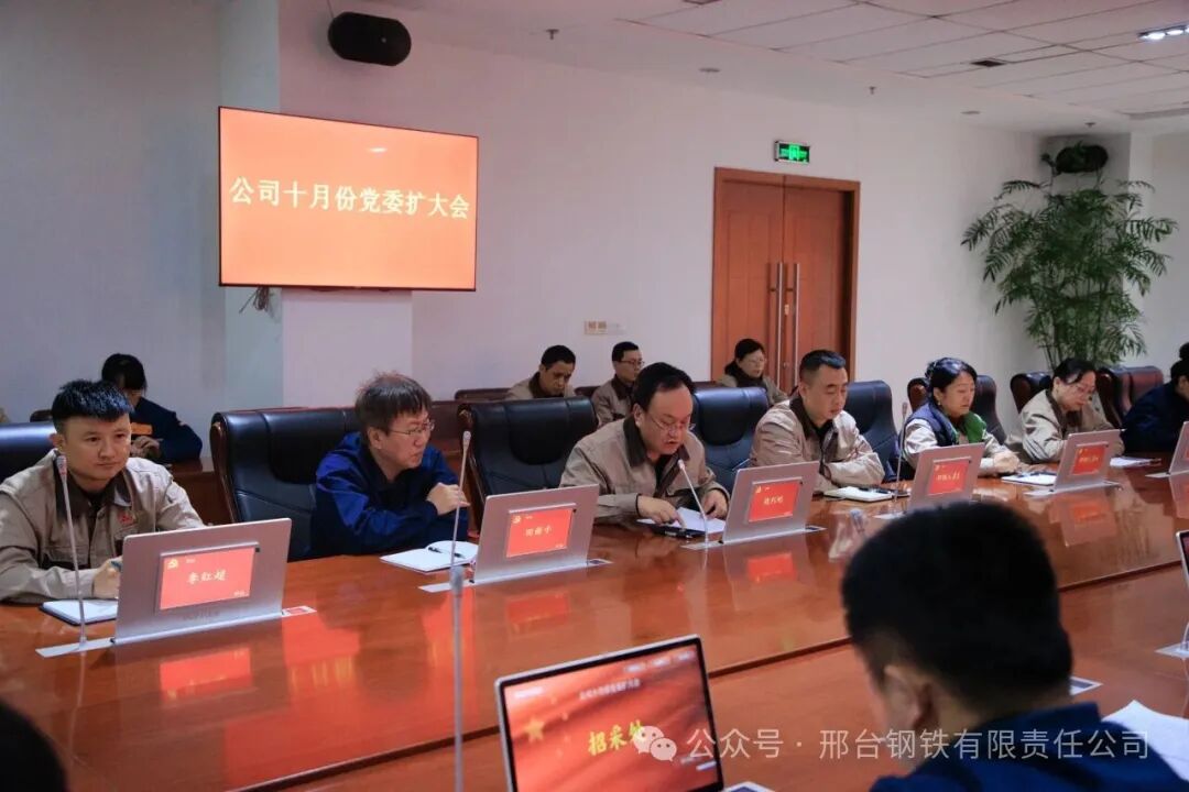 10月30日,公司黨委在公司辦公樓207會議室召開10月份黨委擴(kuò)大會,公司領(lǐng)導(dǎo)田新中、魏利剛、李紅超等高層及全體中層管理人員、主任級、副主任專業(yè)職務(wù)人員參加了會議。駐威縣新廠人員通過視頻會議系統(tǒng)參會。